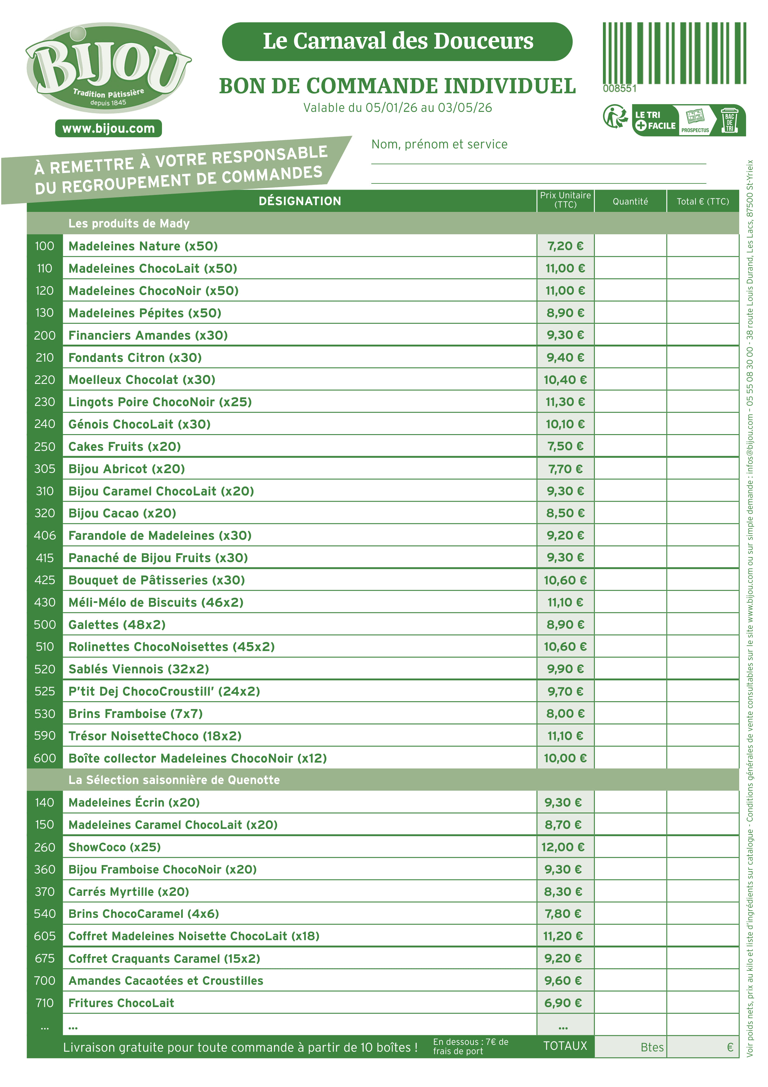 Commande lors d'évènements spéciaux (Fêtes des mères, pères, Noël...) ou à la demande.
